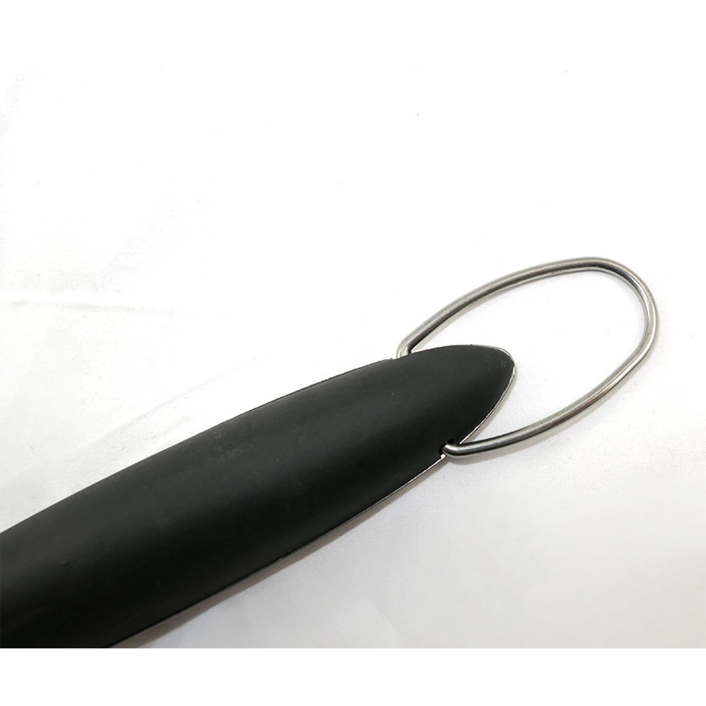 La fourchette équipée d’un crochet se suspend sur l’un des porte-ustensiles du barbecue afin de l’avoir à portée de main à tout moment.