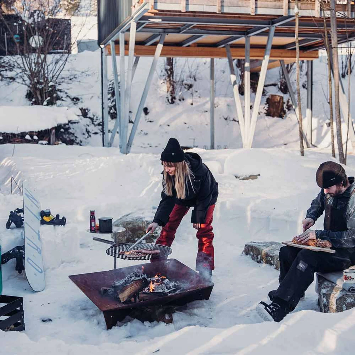 Saisissez quelques grillades au-dessus de vos braises incandescentes en profitant aussi de l’ambiance chaleureuse du feu de camp !