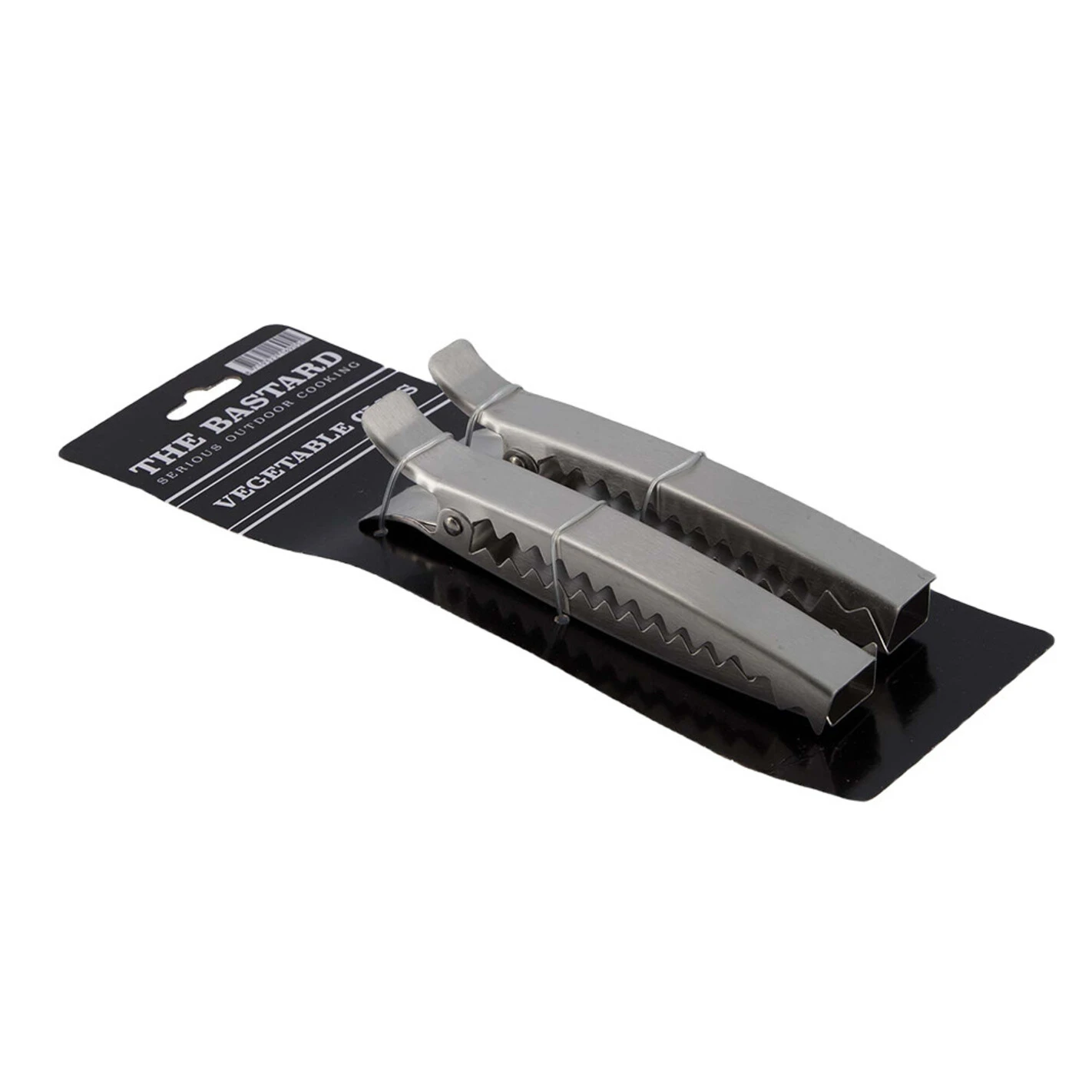 Les pinces à légumes The Bastard vous permettent de facilement créer des fagots d’asperges ou d’oignons nouveaux qui posés indépendamment ont tendance à passer à travers les barreaux de la grille. Ainsi tenus dans une pince, vos petits légumes sont également beaucoup plus faciles à retourner ainsi qu’à poser et retirer du feu.